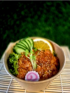 Ryż, warzywa, sos Ebi Kulki łososiowe 3 sajgonki Uramak łosoś Kimchi