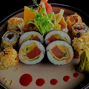 6x Futomak łosoś, papryka w tempurze 6x Futomak tuńczyk 6x Futomak łosoś CAŁA ROLKA W TEMPURZE 8x Uramak krewetka parzona 8x California pasta z maślanej, łosoś 4x California awokado, tuńczyk w tempurze 4x California daikon, tuńczyk w tempurze 8x California tatar z łososia, tamago 8x California węgorz, krewetka w tempurze 6x Hosomak łosoś 6x Hosomak tuńczyk